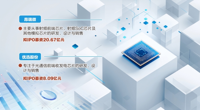 上海證券報記者注意到,昂瑞微、優迅股份均來自計算機、通信和其他電子設備制造業行業,從事相關芯片研發工作,“硬科技”特色凸顯。其中,昂瑞微IPO申請于3月28日獲受理,是今年科創板“考場”迎來的首家IPO未盈利企業,公司還是一家具有差異化表決權的特殊科創企業,進一步凸顯了科創板的包容性。優迅股份則為光通信領域的“國家級制造業單項冠軍企業”。