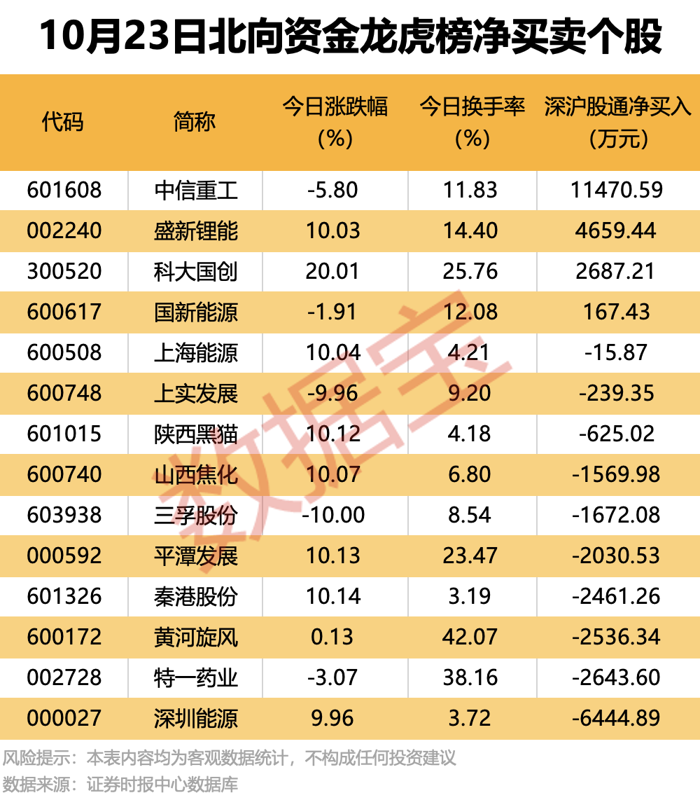 今日龍虎榜現身個股中,4股獲北向資金凈買入。凈買入居首的是中信重工,金額為1.15億元;盛新鋰能、科大國創獲凈買入均超2600萬元。