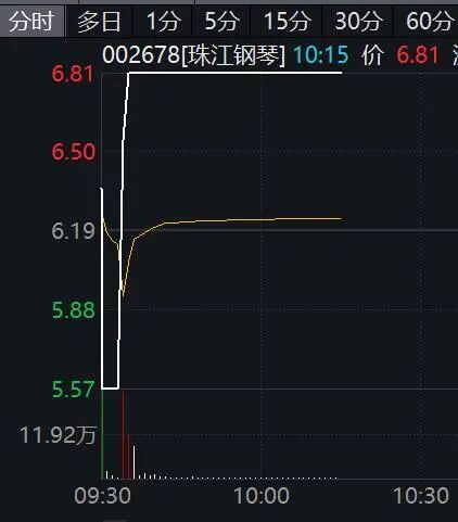 個股方面,珠江鋼琴(002678)盤中漲停,上演“地天板”,現報6.81元,成交額超5億元。此前,珠江鋼琴走出5天3板。10月23日晚間,珠江鋼琴公告,近期公司經營情況及內外部經營環境未發生重大變化;公司未發現近期公共傳媒報道了可能或已經對公司股票交易價格產生較大影響的未公開重大信息。